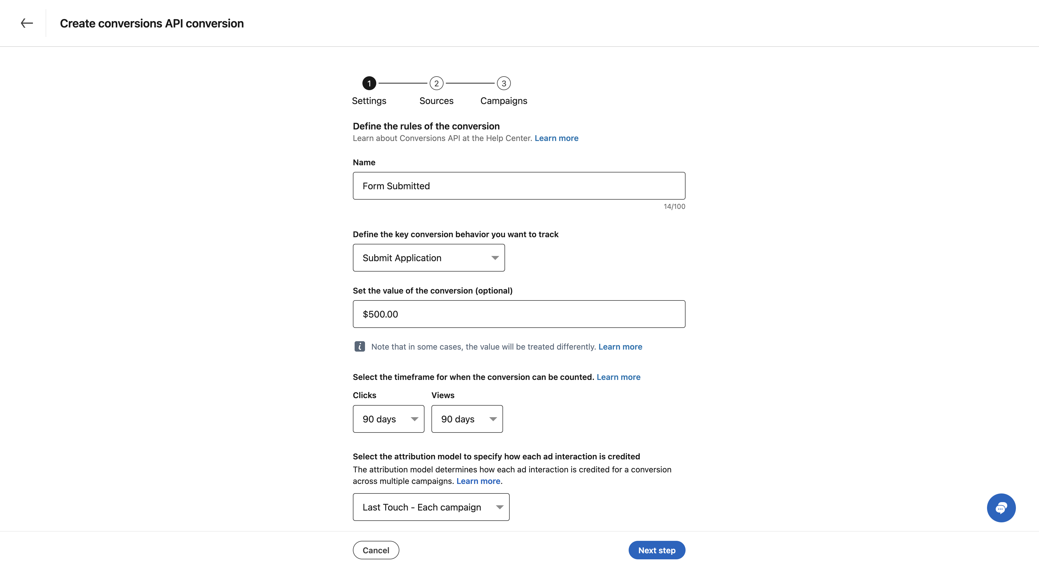 LinkedIn Web Conversions API[Step 3: Set up LinkedIn Web Conversions API Destination(Manage Conversions for Tracking)]